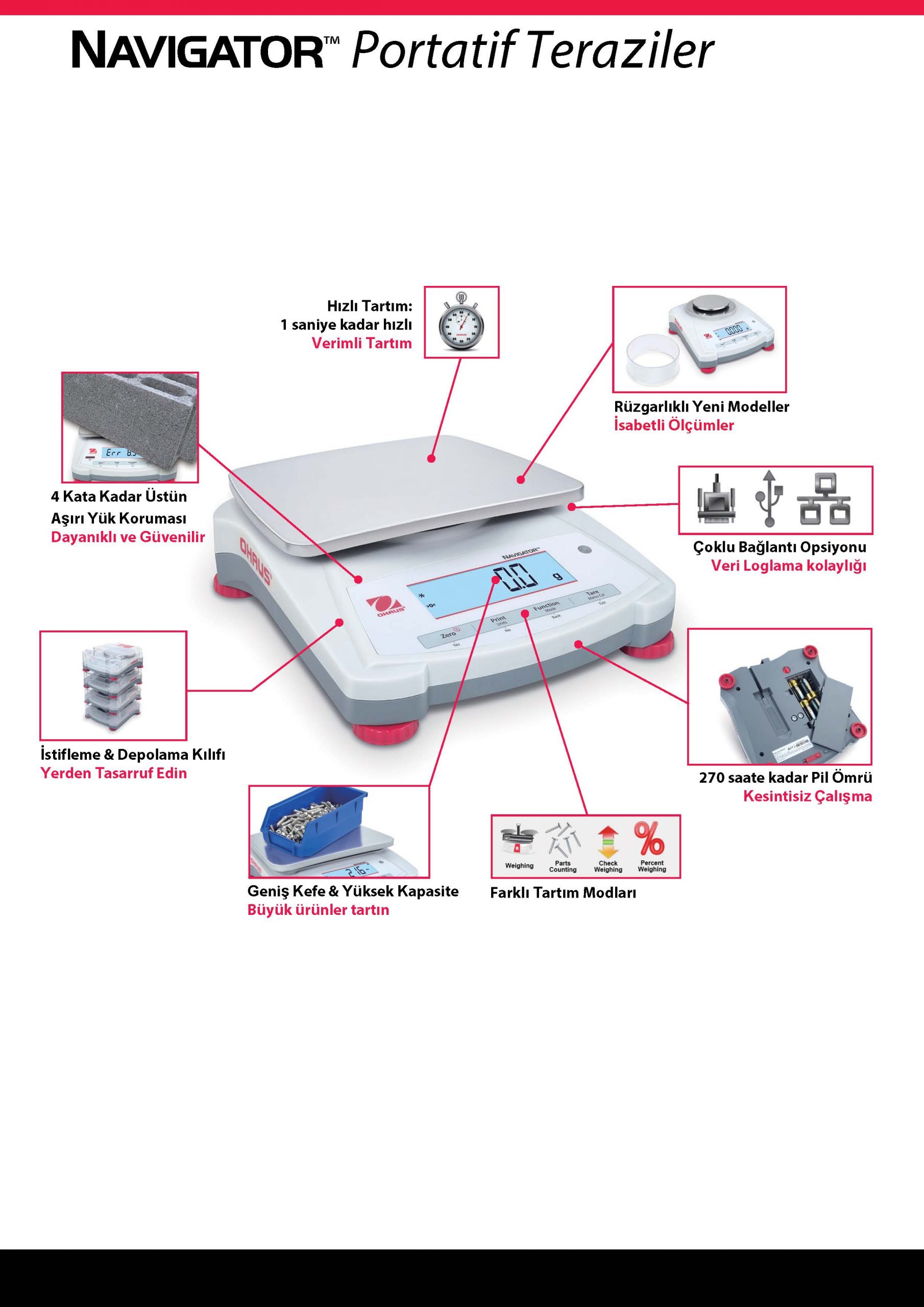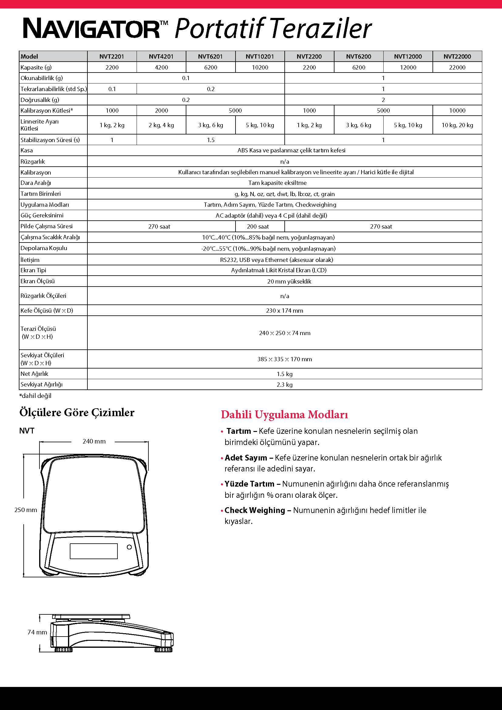 | Uygulama Modları | Tartım, Adet Sayım, Yüzde Tartım, Checkweighing |