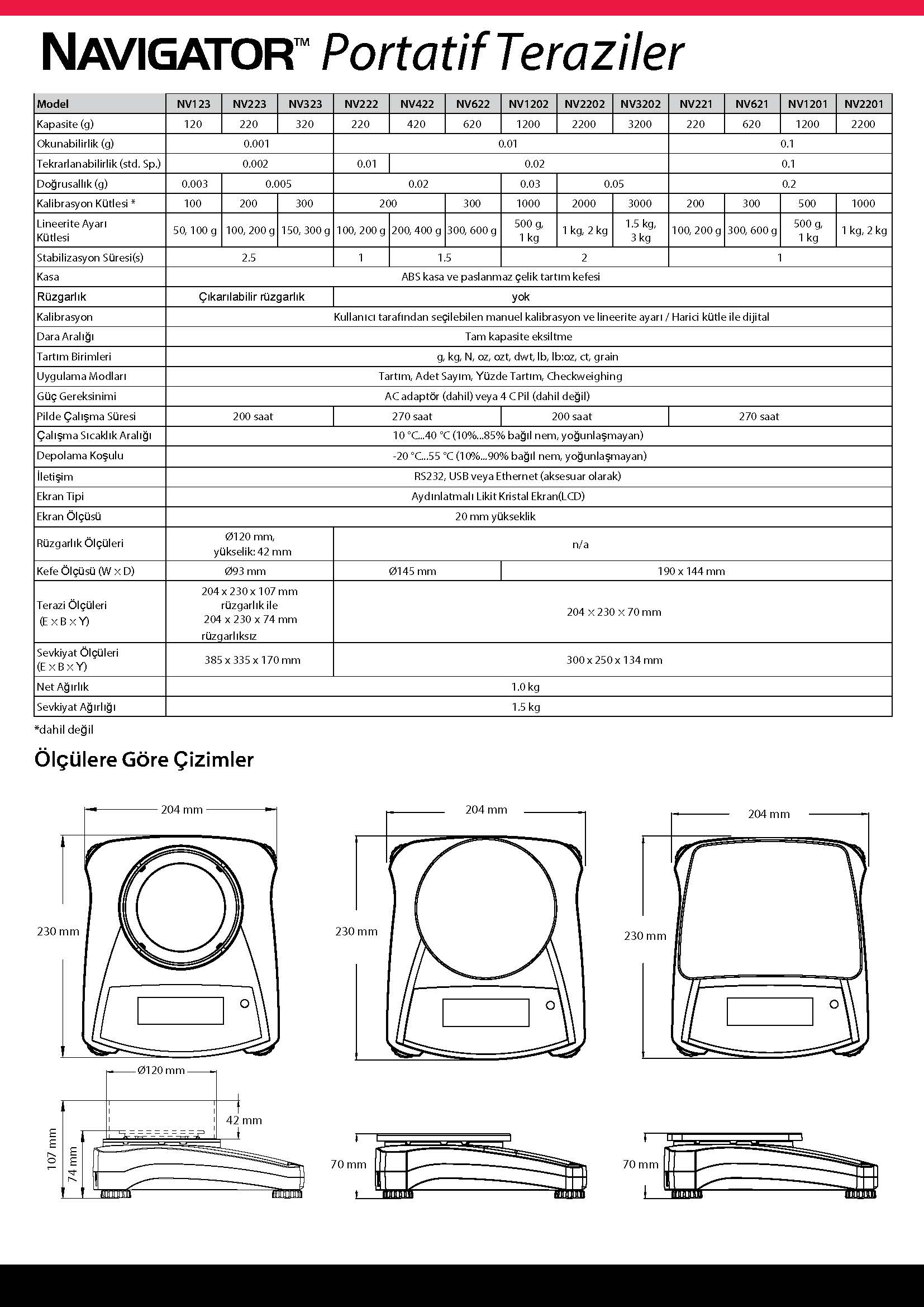 | Okunabilirlik | 0.01 g |